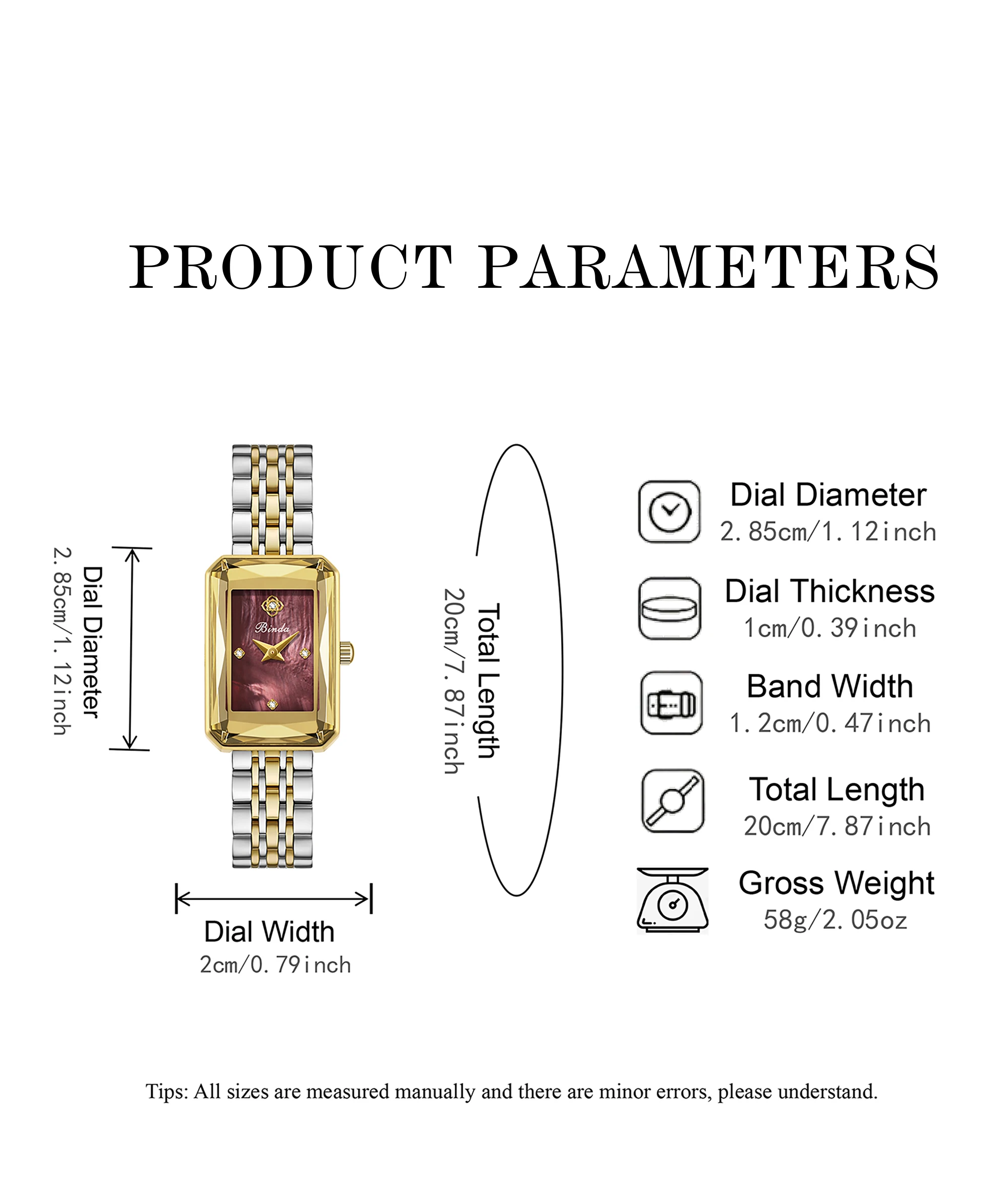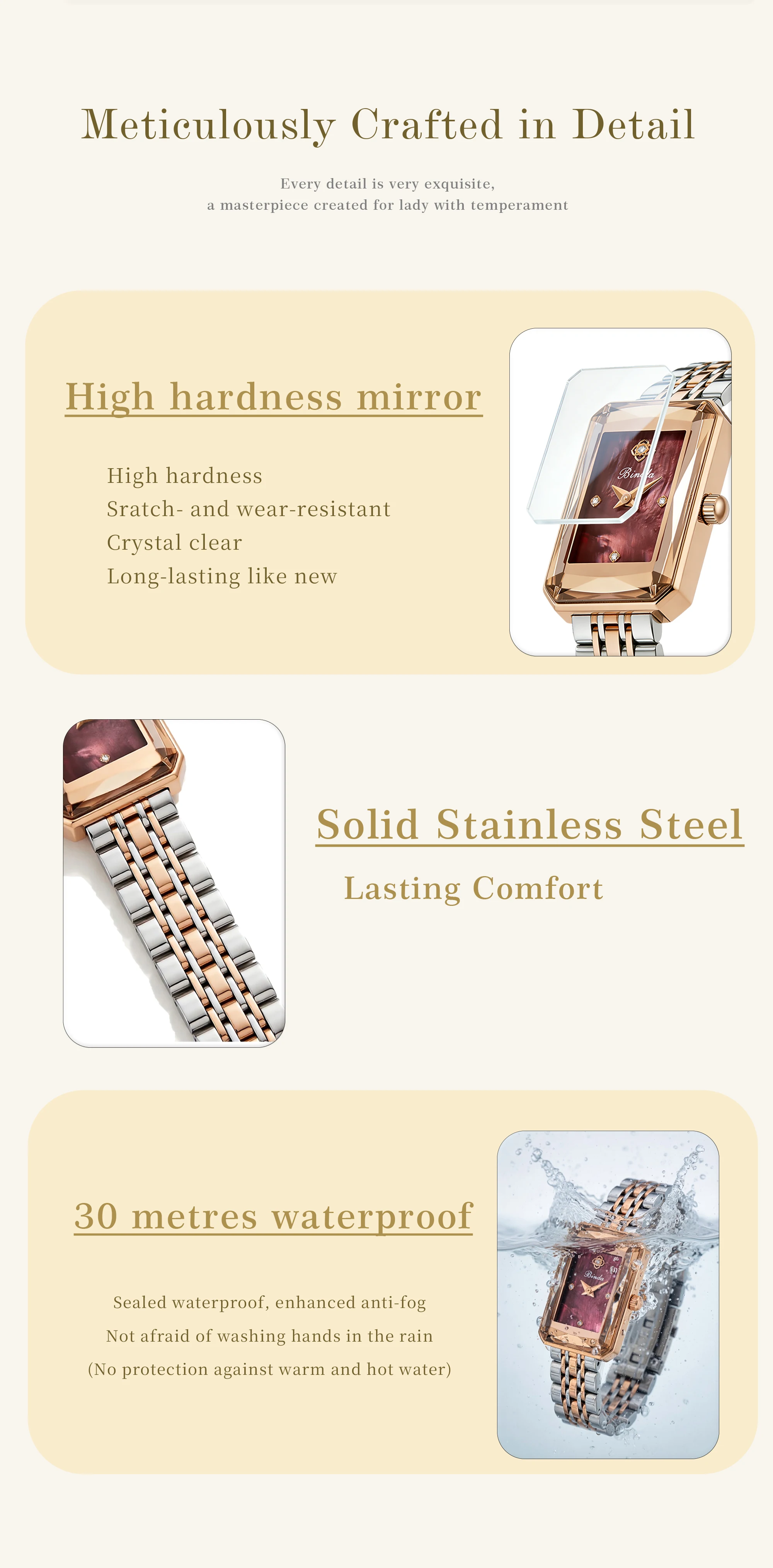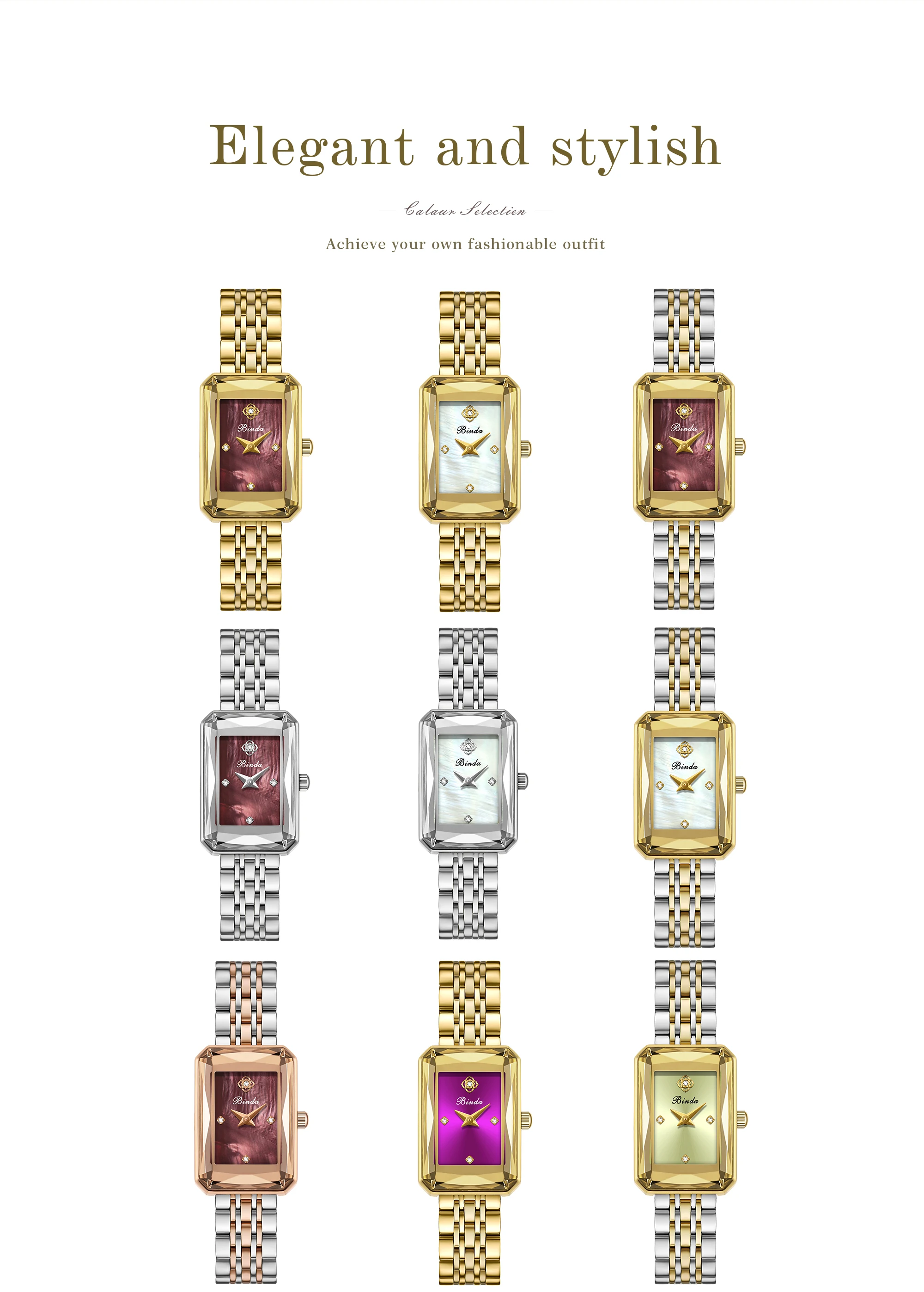 Binda Luxury Brand women Watch Waterproof Luminous Stainless Steel