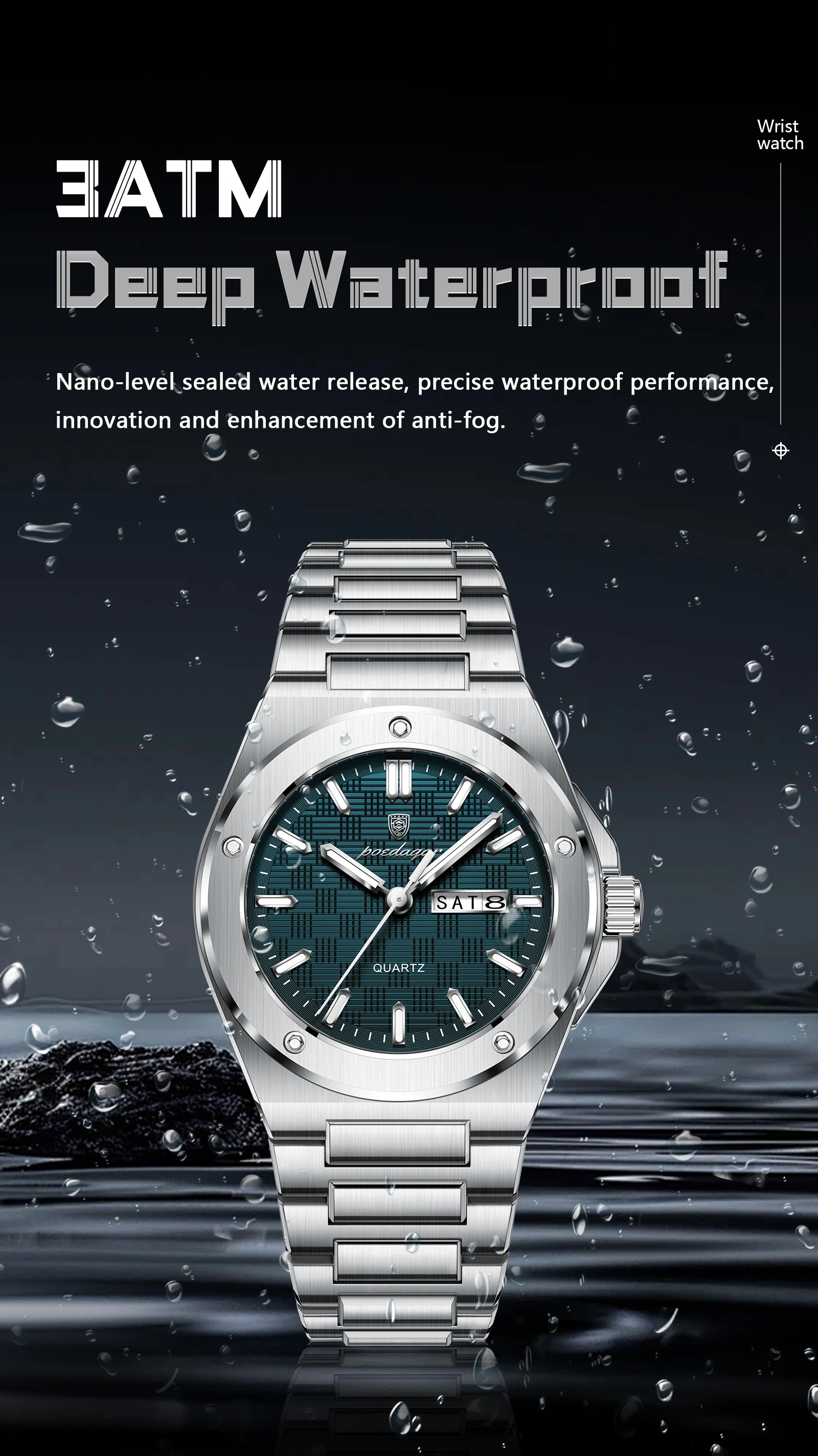 Feature: Luminous,Auto Date,Water-Resistance,swim,Week Display,Luminous Hands